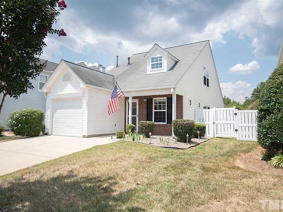 HVAC less than 2 yrs old. NEW water heater. NEW carpet down. First floor MASTER. FRESHLY painted. UPDATED bathrooms and kitchen with all SS appliances including a double oven. PRIVATE fenced in backyard and cute covered porch out front. This home has been so well taken care of! Walk in and start living! MINUTES from Brier Creek, RDU and 540. HOA maintains front yard!