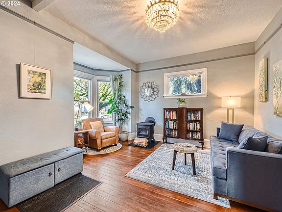 Step into Portland's past with this charming early 1900s bungalow, a perfect blend of vintage allure and modern comfort. Original wood floors, exceptionally tall ceilings with picture molding in the living room, a woodstove, and a cozy reading nook create an inviting atmosphere. The dining room features a bay window and built-in shelving, while the kitchen boasts gas appliances, breakfast area, pantry shelving, access to secret side patio and large glass doors opening on to back deck. The expansive backyard offers a deck with custom bench seating, fruit trees, two sheds and full fencing for privacy. Large gate access on the side street allows for off street parking or RV storage. A full height basement accessed through an exterior hatch, adds practicality and more storage for hobbies. All appliances included including washer & dryer. Centrally located in the Creston neighborhood near many restaurants, shops, schools and parks. [Home Energy Score = 2. HES Report at https://rpt.greenbuildingregistry.com/hes/OR10017484]