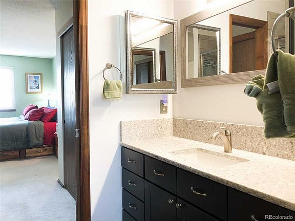 Desirable, beautiful townhome in quiet Littleton neighborhood. This two-story home boasts a newly updated kitchen complete with quartz counter tops and new sink/faucet. The master bedroom comes complete with two spacious closets and an on-suite master bathroom. The master bathroom has been completely remodeled with an over-sized shower, quartz countertops, and updated fixtures to compliment. The comfortable living room has a vaulted ceiling and comes equipped with a gas fireplace. A private second bedroom with on-suite full bathroom and spacious closets will suit any buyer need. A bonus room in the basement can serve as a home office, den, or rumpus room. This unit comes with an attached, oversized two-car garage which is not often found with townhomes. This home also has plenty of updated appliances and features including newer windows and sliding glass door, new deck built in 2019, new garage doors installed in 2018, new roof in 2018, newer HVAC system, and a newer 50 gallon water heater installed in 2015. Enjoy your spring and summer time in the beautifully maintained private pool or stroll through the quiet neighborhood enjoying a small creek that runs through the middle of the subdivision. With close access to gorgeous state parks, breweries, fantastic shopping, entertainment, and dining experiences in Aspen Grove, this home and location is incredible! Come take a look today or check out the virtual tour!