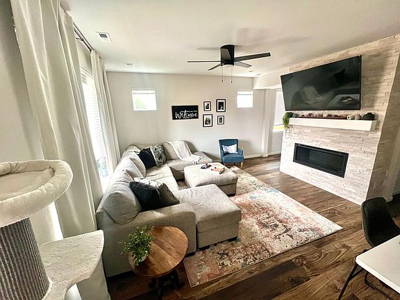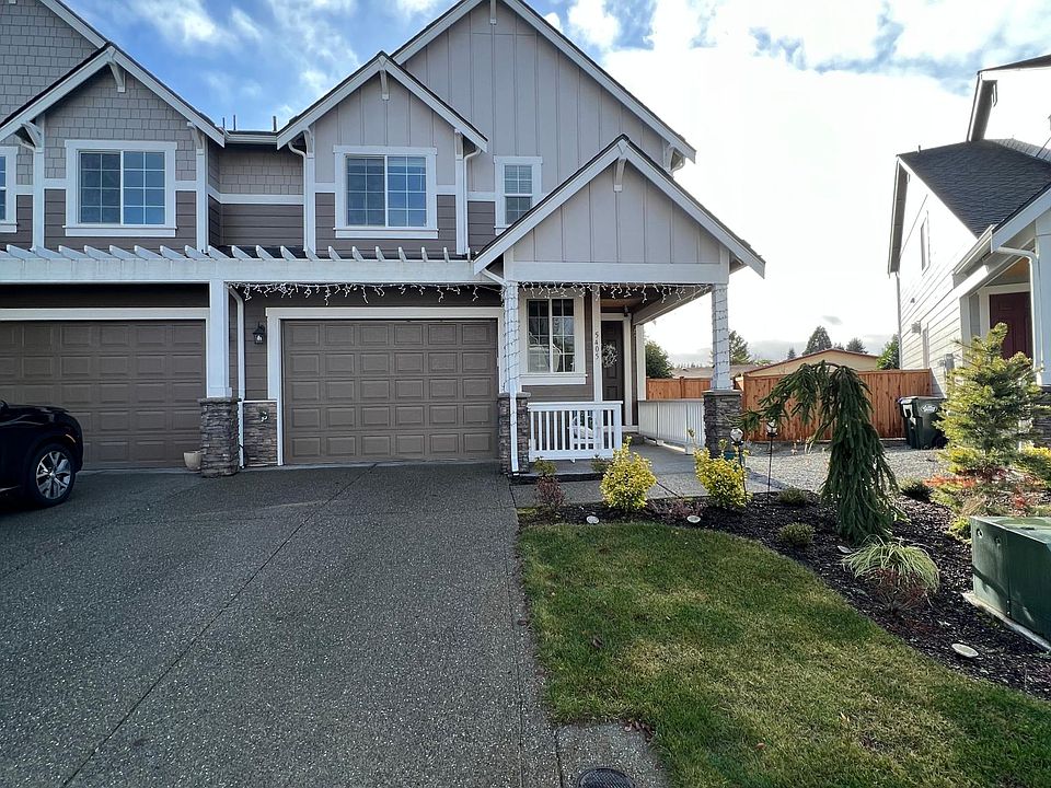 New construction home (2021). 1875 square feet. 4 bedroom 2.5 bath with luxury upgrades including quartz counter tops, 10 ft ceilings, tankless water heater, floor to ceiling stone gas fireplace, marble kitchen back splash, luxury vinyl plank in lower level, upgraded lighting throughout, double vanity quartz countertop in owners suite, and marbled ceramic tile shower/bath tub to ceiling. Home appliances (including washer and dryer). Located in a quiet neighborhood walking distance to several green spaces and parks. Conveniently located shopping/amenities. JBLM 21 minutes away. Large backyard/side yard with privacy fence, green space, and extended patio. $35.00 per month pet fee. $55.00 non-refundable application fee. All utilities paid by renter. Yard to be maintained by renter to HOA standards. 1 year leases. Willing to sign multi-year lease locking in rate.