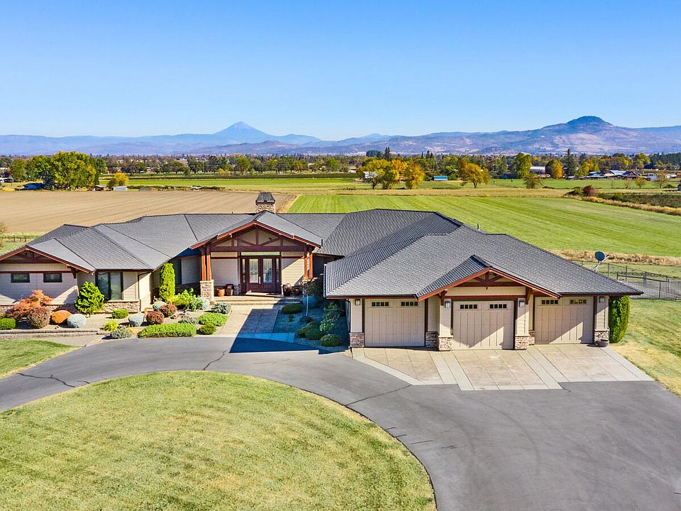 Seven Oaks Ranch is a sprawling masterpiece overlooking 70+/- acres in the Rogue Valley with stunning views of Tablerock Mts and surrounding farmland. Two homes & ability to build 3rd! The elegant main home is full of custom details with open living spaces. Lavish master suite w/ fireplace & private laundry, plus 2 ensuite guest bedrooms, huge office or 4th bedroom, displaying quality craftsmanship throughout. Generous windows overlook patio with in-ground pool & the property's irrigated pastures. This very private estate, with finished 3-car garage, paved circle drive, and security gated entry is situated in the Rogue Valley AVA with strong potential for a well located vineyard site & wine tasting room. The second parcel has historic farmhouse to use as rental, caretaker, tasting rm, etc. This estate offers many possibilities for farming or as a multi-family estate. District irrigation for 62.6 ac, fenced for livestock, & ideally located near airport, restaurants & shopping!