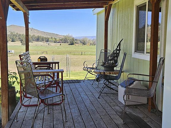 This home has spectacular views of the mountains in the distance and the valley below. Just a few minutes from town. Their are so many custom finishes it's hard not to love this property. Kitchen has new custom cabinets, Corian counter tops, new windows, unique doors. The primary bathroom has two copper sinks, spa tub with custom tile, glass portrait installed above the tub. This bathroom is complete with a bidet. New siding & Metal roof on both the main home and the guest quarters. Covered decks add plenty of living space on both the front and back of the home. Newer pressure tank and pump. Four Water Hydrants in key locations keep these grounds looking great and critters watered. Guest quarters include a kitchenette, 2 bedrooms and a bathroom with tankless water heater. Great for company. If you have more company, then the RV hookup will be appreciated. Two driveways with plenty of space to park your tractors, trailers and RVs. Plum Cherry & Peach trees complete the orcha