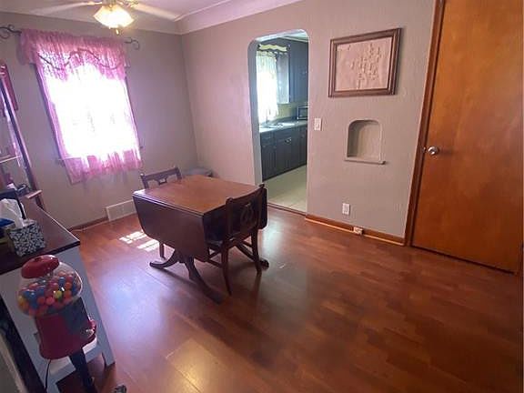Welcome to this charming home situated on a desirable corner lot! This property features three bedrooms, with two conveniently located on the main floor and one upstairs, offering ample storage space. The dining room provides additional room for gatherings and entertaining. Plus, the full basement and storage sheds provide plenty of extra space for all your needs. Seller is providing a one year home warranty. Don't miss your chance to make this lovely home yours!