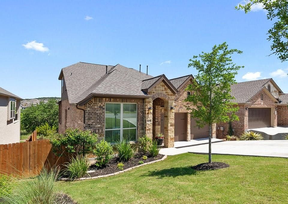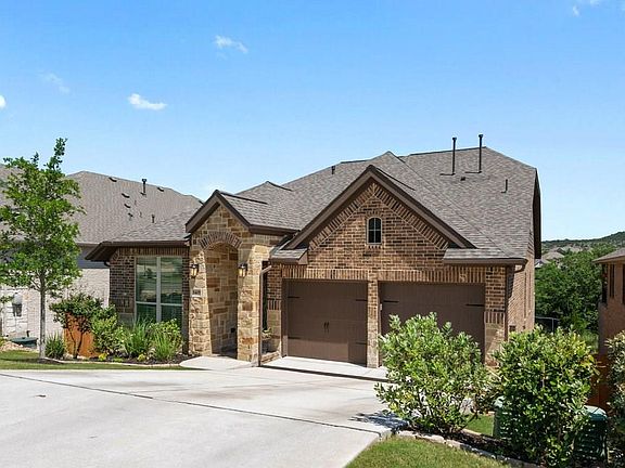 Beautiful brick and stone one-level home in Sweetwater! Greenbelt views! Study with french doors. Family room with wall of windows. Master bath with double vanity, garden tub and walk-in shower. Upstairs game room, secondary bedroom and full bathroom. Sprinkler system. Covered back patio with gorgeous views. Lake Travis ISD!