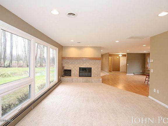 Welcome to this fantastic 3 bedroom, 2.5 bath ranch home on 4+ acres in Forest Hills School District! Main floor features open floor plan with wonderful kitchen and dining area, living room with nice fireplace, family room with large entertainment center, 3 season room, private master suite, 2 additional bedrooms, full bath, half bath and laundry. In the lower level you will find a large recreation room with fireplace, wet bar and pool table as well as 2 bonus rooms! Property also features 2 car attached garage, large deck, pole barn and an easement granting access directly to the Thornapple River. Don't miss out on this great home - call for a showing today!