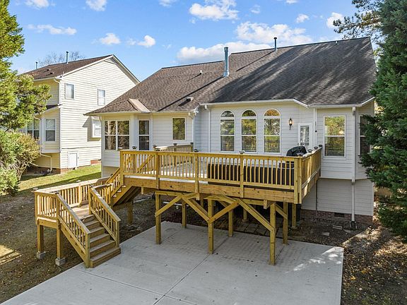 Move in ready home in Pine Hall Planation! This home has new LVP flooring throughout the entire first floor, steps and loft area of the second floor. The first floor offers a dedicated office, formal dining room, kitchen with white cabinets, granite countertops and a kitchen island. The living room's vaulted ceiling fills the home with natural light. The 1st floor primary bedroom offers a walk in closet, bathroom with a walk in shower, dual vanities, tub and water closet. The second floor has a loft area, 3 bedrooms, plenty of storage, full bath and a great view of the living room. The brand new deck is made for entertaining and provides a perfect place to sit and enjoy the view of the neighborhood pond. This is a unique lot offering privacy and close proximity to everything Raleigh has to offer.
