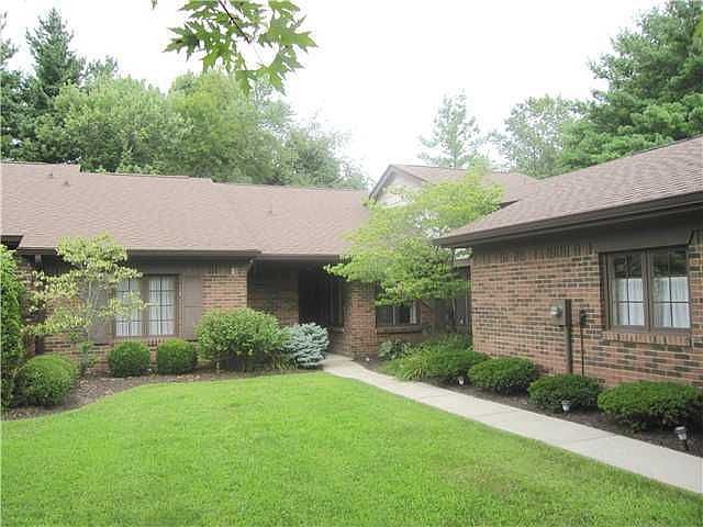Enjoy gated privacy, a nature preserve setting & no maintenence only 15 to 20 mins from Downtown, Castleton & Keystone Crossing. No stairs in this big ground floor ranch condo, & no one living over you, just space galore & a very private end of bldg location. It's all neutral, immac & in great cond, so you can move in now & add your decor touches later. Nice 2BR + Den floor plan, w/a big, inviting patio - it feels like your own pvt, tree lined back yard (but you don't maintain it!).