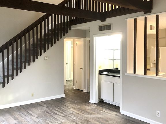 Two story townhome for rent! Two master bedrooms (one upstairs, one downstairs), two bathrooms, 22ft high ceilings in living room, washer and dryer connections, storage room, fenced in patio, and fireplace. $1,250 deposit. No pets.