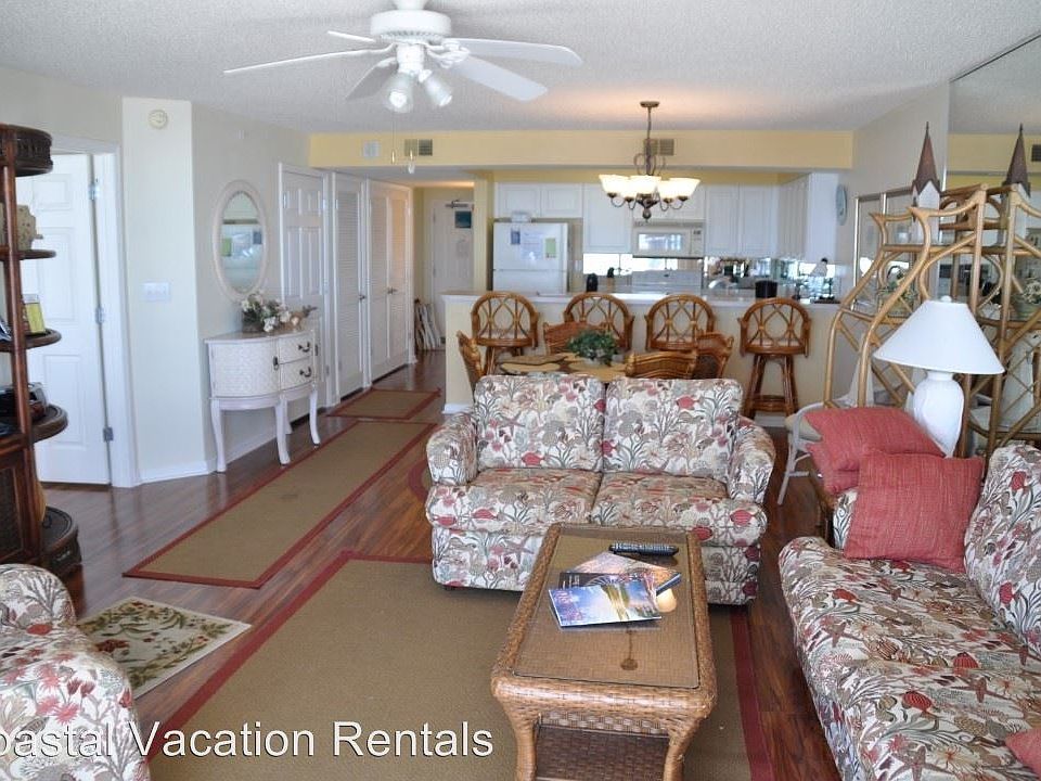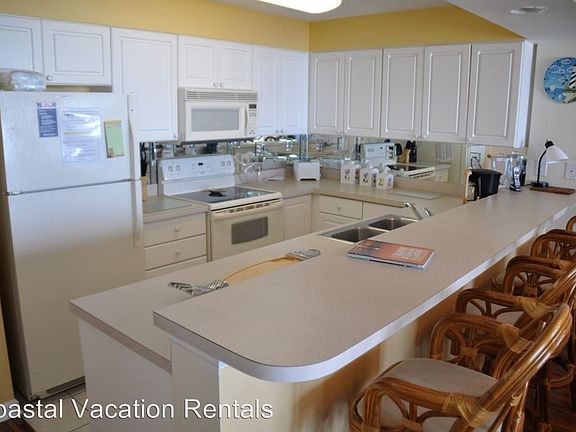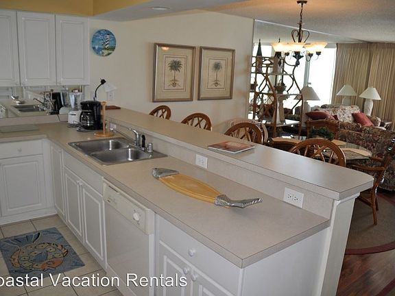 Seasonal & Vacation Rental - Sunrise Point - Beautiful, 4th floor, oceanfront 3 bedroom/3 bath (sleeps 6) condo that is located in the Cherry Grove section of North Myrtle Beach. Fully equipped kitchen with breakfast bar, in-unit washer/dryer. Living Room has flat screen TV, free WiFi, oceanfront balcony access. Master bedroom has 1 king bed, flat screen TV, en suite bathroom with garden tub and access to oceanfront balcony. Guest rooms have 1 queen bed each and flat screen TV's. Building offers indoor/outdoor pools, kiddie pool, lazy river, WiFi, and elevator in building. No smoking, no pets, no motorcycles, no trailers. 2 reserved covered parking spots. To book by phone, call (843)796-2425. To check availability or book online, click the link below. https www.vrbo.com/707120?unitId=1255058 No Pets Allowed (RLNE3787104)