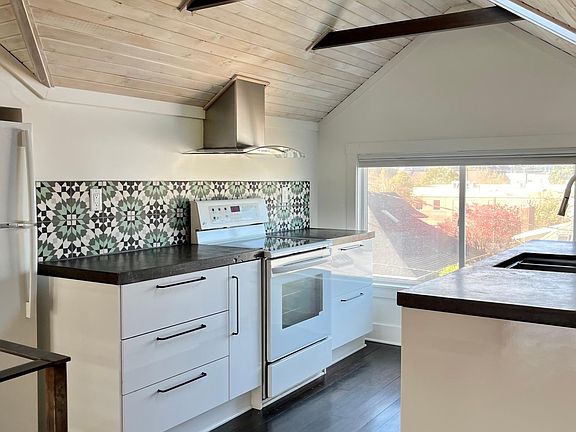 A sunny and stylish loft-style apartment with 15' ceiling full of charm and sophistication in a lovely converted historic home. This Scandinavian-inspired open-floor plan apartment is a stunning mix of custom woodwork and smart design, and includes a galley kitchen with new appliances, built in California King bed (doesn't include a mattress), and stunning tiled master bath, complete with soaking tub. Common areas include storage and shared laundry facilities in the basement as well as a front porch and backyard for tenants to share. The building also has off-street parking.