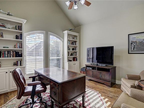 Quality built home by Ron James with custom details and appointments throughout. Beautiful hardwood floors, plenty of builtins and large picture windows allow tons of natural light to flow through the home. A fabulous kitchen with wrap around breakfast bar, center island, Butlers pantry, Bosch cook top, double ovens and granite countertops. Plantation shutters along with custom window coverings and designer fixtures are a few of the interior amenities to enjoy. The exterior offers a huge covered patio and nice size yard with lovely and well maintained landscaping. The garage floor has commercial coating and inground storm shelter. You won't want to miss seeing this one!