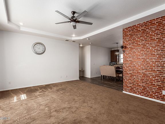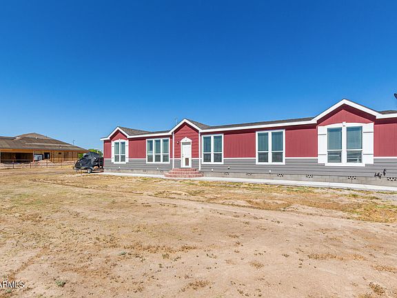 Discover the idyllic charm of this horse property situated on a vast 1.15-acre lot in Buckeye. This home features cozy carpet and wood-look flooring, recessed lighting, and an inviting living room with a brick-accented wall. The eat-in kitchen is a cook's dream, boasting chocolate-stained cabinets, tile backsplash, solid surface counters, a walk-in pantry, and a center island with a breakfast bar. The main bedroom offers a private sanctuary with its own bathroom featuring dual sinks, a soaking tub, and a walk-in closet. A versatile den provides space for an exercise room or office. Irrigated Lot with Grass and Citrus Throughout. Home has Private Well, Septic and Water Softener, dual pane windows, Plenty of room for RV Parking or to add a Horse Set up area. Don't miss this opportunity!