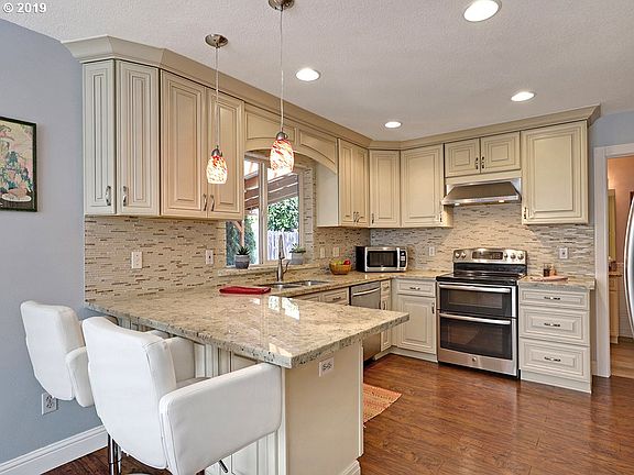 Quiet cul-de-sac living w/modern updates, blocks from Powell Butte Nature Area trails. Stellar layout; 3 beds & 2 baths upstairs, open floorplan on the main w/formal dining and breakfast bar. Remodeled kitchen features granite, new cabinets & stainless appliances. Indoor/outdoor living; sliding doors, covered patio & side yard with established flora. Two car garage, A/C & ample storage throughout. Ready to move in and start nesting. [Home Energy Score = 7. HES Report at https://rpt.greenbuildingregistry.com/hes/OR10077890]