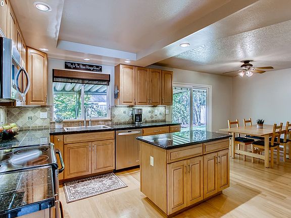 Impressively updated one level home in mature SW Portland neighborhood! Ideally located, minutes to Multnomah Village & Gabriel Park. Thoughtfully designed kitchen w/ maple cabinets, granite counters, stainless steel appliances, and spacious nook w/ fireplace. Sizeable bedrooms, remodeled bathrooms w/ tile finishes. Laminate wood style flooring throughout. Spacious, fenced back yard with covered patio, raised garden beds, and flat yard.