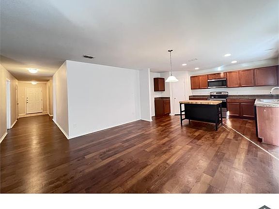Move-in ready one-story home built in 2013 featuring 4 bedrooms, 2 bathrooms, 2-car garage, 1,876 sq. ft. The open floor plan includes a spacious living area, dining space, kitchen with island, recessed lighting, walk-in pantry, and newer appliances. BRAND NEW laminate flooring in all four bedrooms, and luxury vinyl plank flooring in the living room, kitchen, and hallway. The home also offers a newer and EFFICIENT HVAC system, an extra closet near the front entry, and additional storage in the laundry room. Comes with a front storm door and covered front for added comfort. Extra higher platform in the backyard. Located within walking distance to the elementary school and library. Dining table can be removed before move-in upon request. It is actual better than in the picture! Lower credit score is considerable with extra deposit, and it's subject to owner's approval case by case.