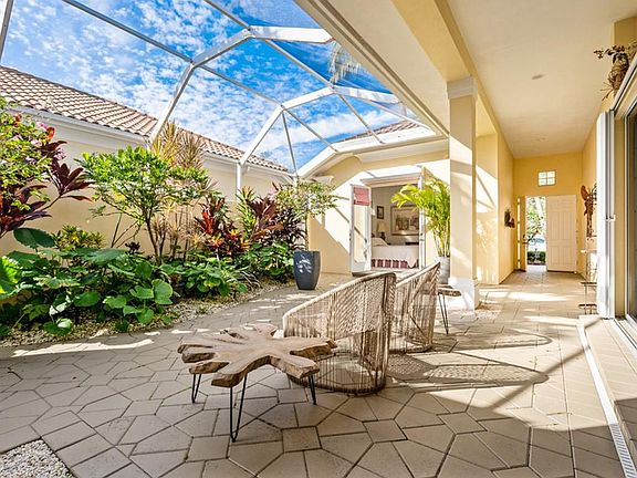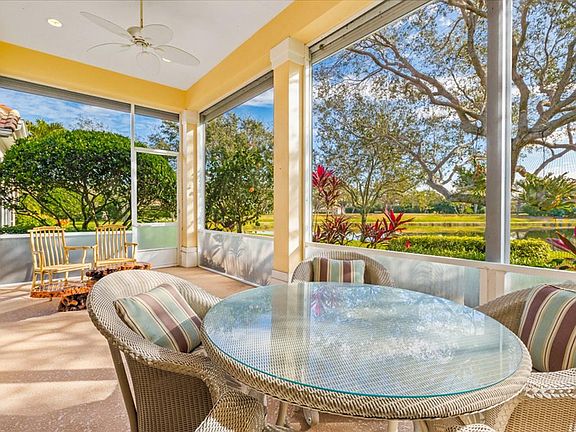 Fabulous Sunset Cove courtyard cabana home situated on beautiful waterfront lot. Stunning courtyard entry greets you as you enter into light, open floor plan, expansive screened and covered patio. Master on main, split plan, 2 bedroom upstairs plus luxury one BR cabana. Golf & Tennis membership available with incentives Amenities with GH club membership. Sizes are approx/subj to error.