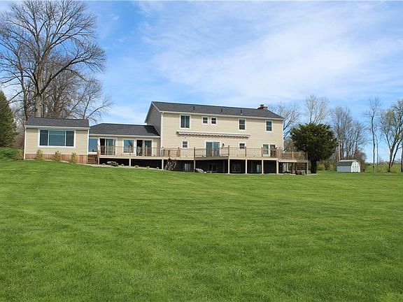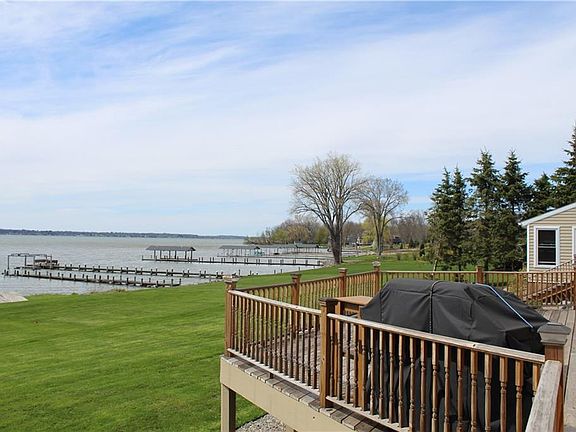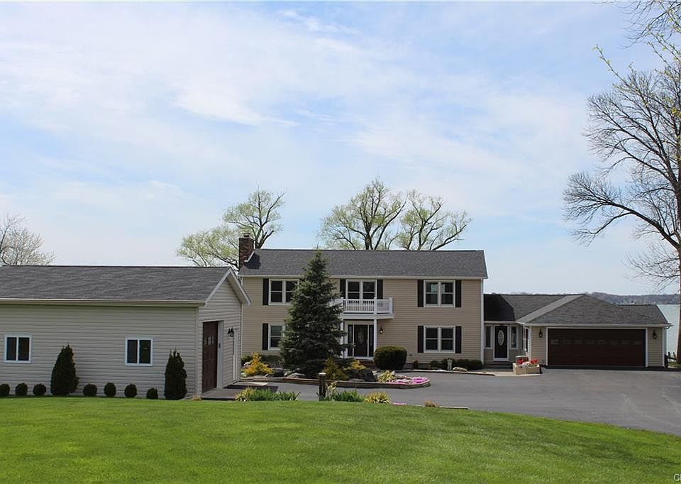 Work from Home!! Year-round Oasis on Cayuga Lake with 129' of Lake Front! Fantastic Income opportunity, estimated Peak Season over 60k. This 2 story home is impressive with stunning lake views from almost every room! Features a gorgeous lake view Executive Home Office w/ high speed Internet/cable. Public Utilities & New Roof on the main house! Exotic wood flooring throughout. State of the art eat-in kitchen with granite counter tops and island. Open floor plan includes a Great-room w/stone gas fireplace and wet-bar. A wonderful gathering place to entertain family & friends! Large triple-pane glass sliders open onto an enormous deck, which includes a natural wood clubhouse w/hot-tub/infrared sauna. Walkout basement guest suite/apartment w/wood burning fireplace and kitchen. Over-sized separate 3rd garage features a shop area and plenty of storage for all your water toys. Manicured landscaping & lush green lawn covers a large backyard level with the lake. Removable dock, No flood insurance required! Enjoy all the amenities the Finger Lakes has to offer, amazing lakes & scenery, outdoor adventure, wildlife, marinas, farm to table cuisine, history, arts & culture, and famous wineries!!