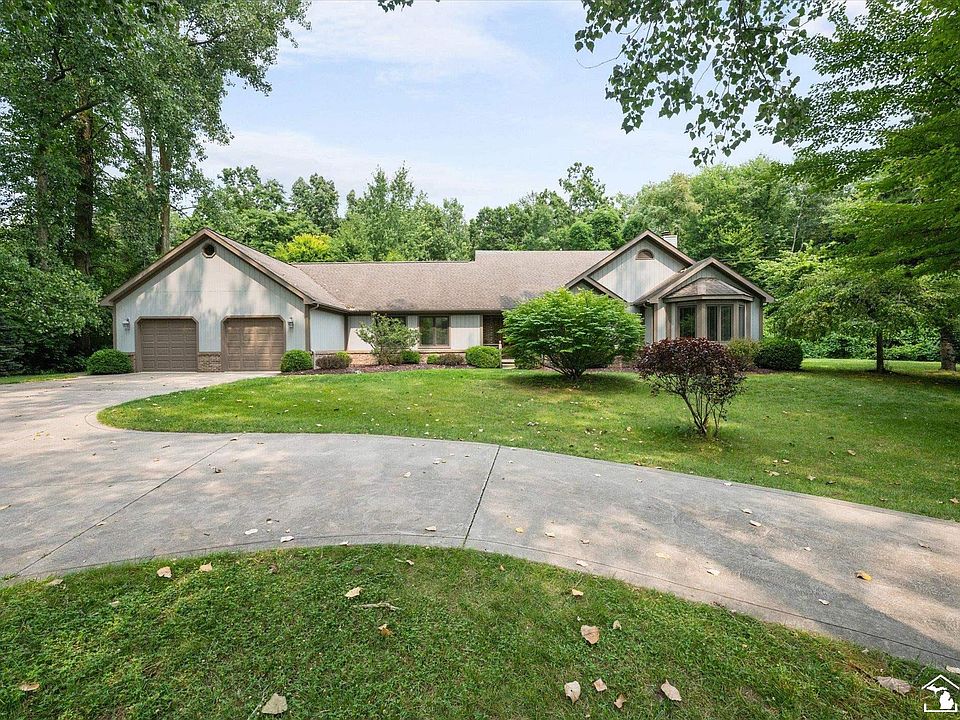Multiple offers, open house canceled! Welcome home to the one you've been waiting for! BEAUTIFULLY situated on a quiet 2+ acres, this well-maintained ranch features a vaulted great room with fireplace, updated eat-in kitchen with granite counters, covered deck area overlooking the beautiful POOL with water feature. 4 bedrooms, 3 full updated baths. Additional living room is perfect for a movie room, home office, gym, or rec room. Circle driveway leads to 2 car garage. Quiet area and near DNR protected land. Easy access to US-23. Showings start Friday!