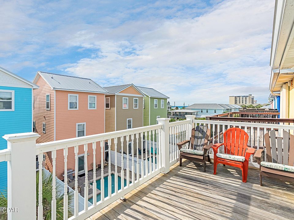 Located just steps from the sugar-white sands of Panama City Beach's quiet east end, this beach home combines the best of location, functionality, and flexibility. With no HOA and the freedom to offer short-term rentals, this property is ideal for a serene retreat, full-time residence, or vacation rental. The thoughtfully designed layout spans multiple levels, ensuring both privacy and spaces for gathering. The first floor features three bedrooms, two full baths with granite countertops, and a convenient laundry area. Ascend to the second floor to a spacious great room with cathedral ceilings, beautiful hardwood floors, and an open kitchen. Stainless steel appliances, a kitchen island and breakfast bar make this space functional and inviting - perfect for hosting or enjoying casual meals. Step out onto the second-floor balcony to enjoy a morning coffee or the evening breezes. The master suite on this level creates a private sanctuary, complete with a well-appointed bathroom featuring a walk-in shower and separate water closet. On the third floor, you will find another balcony and a versatile loft area that can be transformed according to your needs - whether as an additional bedroom, game room, or entertainment hub. Outside, the fenced yard and patio area provide a private space for relaxation or gatherings. Located just a short stroll from local favorites like Schooners and a quick drive to St Andrews State Park, marinas, golf, shopping and dining, this home offers the perfect blend of peaceful seclusion and convenient access to attractions. If versatile design, spacious living, and steps-to-the-beach convenience are on your wish list, make it a point to see this home. Call to schedule a private tour today!