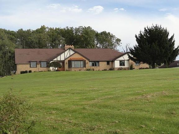 Spacious executive ranch, only 2.5 miles from I-71. 5 bedrooms, 5 full baths, formal living room, family room, master suite with tile bath, and atrium doors to patio overlooking 1-2 acre pond and woods. 4 bedrooms on 1st floor and 5th bedroom upstairs with full private bath. Approx 1352 additional finished sq ft in walkout basement with full kitchen, bath, exercise area & private game room. 4 car attached garage & 40x60 pole building with 6'' side walls, insulated, concrete floor, (2) 10' doors and 220 amp. Geothermal ground loop heat for home, plus 2 wood burning stoves. Approx 11-12 acres to be surveyed. Taxes are estimated
