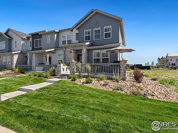 Feel right at home in this better than new end-unit two-story townhouse with tons of new upgrades and features! Experience Timnath's charming small town vibe with beautiful parks, majestic mountain views, and quaint downtown. As you step inside, you will be greeted by a spacious and modern open-concept floor plan that effortlessly connects the living areas, perfect for entertaining friends. An abundance of natural light streams through the large windows, illuminating the refined interiors and luxury vinyl flooring, creating an inviting ambiance throughout your home. The gourmet kitchen boasts a harmonious blend of functionality and style, showcasing stainless steel appliances, gorgeous quartz countertops, handsome white cabinetry, and a generously proportioned center island with bar seating. Find solace in the private haven upstairs with three generously sized bedrooms, thoughtfully curated to offer both comfort and versatility. The primary suite includes a walk-in closet and an ensuite bathroom with dual sinks and a glass shower with a built-in bench. Immerse yourself in the beauty of nature as you unwind on the spacious front porch, embracing the gentle breeze and taking in the serene surroundings. This picturesque setting presents opportunities for delightful al fresco gatherings or enjoying a sunset with a glass of wine. Revel in the proximity to parks, scenic walking trails, and recreational areas, allowing you to embrace an active Colorado lifestyle. Walk to Main Street where you can grab a coffee at the cafe or a beer at the brewery. Many alluring expansion projects are in the works including a pool, fitness center, and lake where you can kayak and paddleboard. Experience the eco-friendly advantages of a home empowered by efficient solar panels, reducing your carbon footprint and saving on energy costs. Low-maintenance living with lawn care and snow removal included! The spacious crawl space and attached garage provide ample storage.