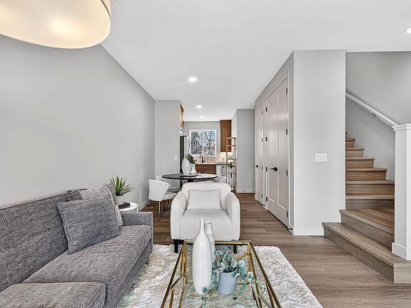 The second level is thoughtfully designed, featuring two bedrooms with walk-in closets, upper-floor laundry, and well-proportioned spaces that feel intuitive and livable. The third level is dedicated to a private primary retreat, where a lofted flex space, expansive walk-in closet, and spa-inspired ensuite come together to create a calm, elevated escape from the city below.