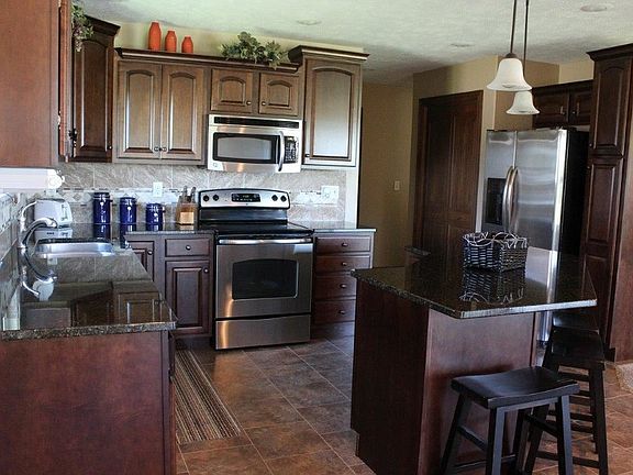 Your next home of 3148 sq feet awaits. It has 5 bedrooms, 3 bathrooms and features granite counter tops with a large center island, stainless steel GE appliances, tiled floors in kitchen, laundry and bathrooms. An open floor plan that flows, oversize trim woodwork, two-panel doors, water softener, 3 car garage with a zero step entry, an extra parking pad on the side of the house, covered front porch, large back patio, shed, underground sprinklers, a mix of fruit trees, and flowers, beautifully landscaped with a garden. The lawn care is prepaid through 2018, new roof in fall of 2015, gutters are brand new, passive radon system. Three storage areas maximize the use of space.