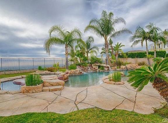 Enjoy absolutely incredible panoramic views all the way to the ocean. This stunning home is located in prestigious, guard-gated Portofira Estates in the foothills of Orange and features 5 bedrooms, 4 ? baths plus a Library/Office and Rotunda Bonus Room. The formal Living Room boasts two story windows and a dramatic fireplace. Chef's kitchen with granite counters and breakfast room adjoins the Family Room with fireplace. Private Master Suite enjoys its own sitting area with fireplace and a balcony with forever views. A huge, free form Pebble-tec pool and spa with beach entry and in-pool seating serves as the centerpiece for this entertainer?s yard. Separate, covered BBQ area plus bar completes the resort-like setting. You will feel as though you are on vacation all year round. 4 car garage. Villa Park schools plus close to sought-after private schools.