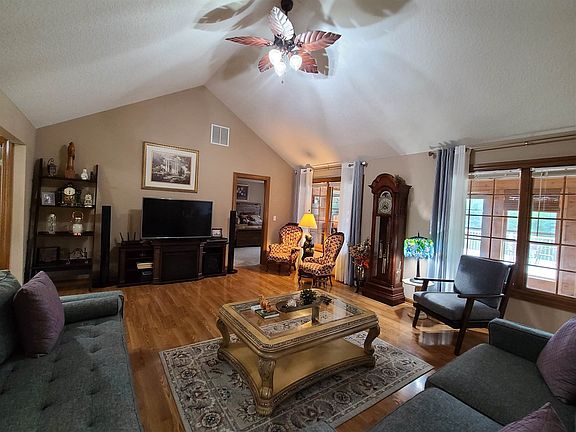Beautifully maintained 3 bedroom 2 full bath charmer, centrally located on the largest of 4 ponds in the desirable Bear Creek Estates community. Open floor plan and built with large picture windows throughout to capture natural light and to maximize views of the water. Elegant Great Room with Cathedral ceiling and spectacular views of the water. Relaxing Natural Wood Family Room walks out to a landscaped patio and newly constructed and massive 22' X 17' Deck overlooking the water and nature areas. Large Bay Windows provide water views from the kitchen and dining room. Impressive Master Bedroom has tray ceiling and window overlooking the water. En Suite with double vanity and huge walk-in closet. 2nd Bedroom has cathedral ceiling, arched window and walk-in closet. 3rd Bedroom also with walk-in closet. All Appliances, Water Softener, and portable A/C Unit (in family room) included. Playground and walking path.