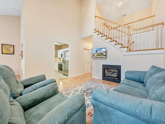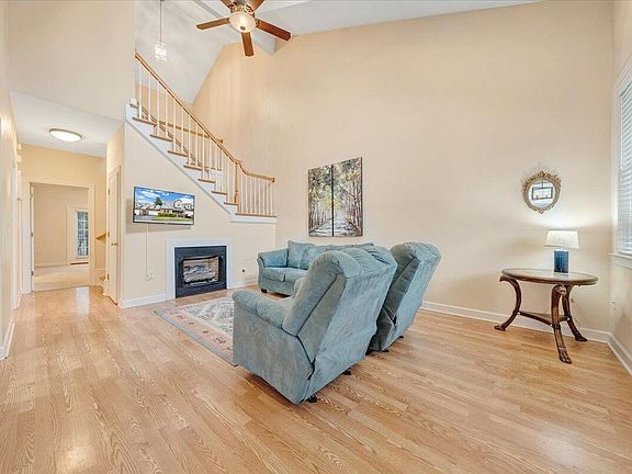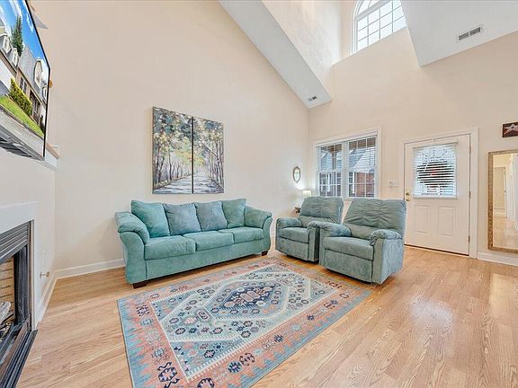 Located on a cul-de-sac in the desirable Hunting Hills neighborhood, this 1.5 story patio home offers 3 bedrooms, 1 office/bedroom, 2.5 baths and entry level owner living. Vaulted ceilings welcome you with abundant natural light that envelopes the living room and dining area. A pass through window connects the kitchen to the dining and allows for a semi open floor plan. Just a few steps further take you into the primary suite, complete with french doors to allow access to the back patio and fenced in yard. The ensuite offers a dual vanity, updated shower, and large whirlpool tub. A half bath, laundry, and 2 car garage complete the first floor. Upstairs you will find 3 more bedrooms, a large landing, and a full bath. The Lennox furnace and AC system are about 4 years old.