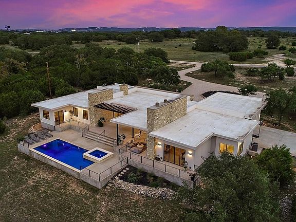 Marfa meets downtown luxury. 7.7-acre luxury estate with amazing hill country views on your own private road! Property is a Ranchette surrounded by other ranches. Only 3 miles past Sweetwater and 3 miles to Briarcliff Marina. House is straight out of architectural digest with every attention to detail take care of. 4 bedroom + Media room + dedicated office. Could easily be a 5 bedroom. Floorplan in attachments.1000 SQFT of outdoor entertaining and outdoor kitchen. Open floorplan and living room built around hill country sunsets. Every room has a hill country and a negative edge pool view. Perfect for entertaining in complete privacy. You feel like you are on your own private ranch minutes from Hill Country Galleria and downtown. Separate office and amazing outdoor entertaining area with an outdoor fireplace, gill, and sinks. Private casita off of the main pool deck with a separate bath. Wet weather creek on the 7.75 acres and horses allowed on the property.