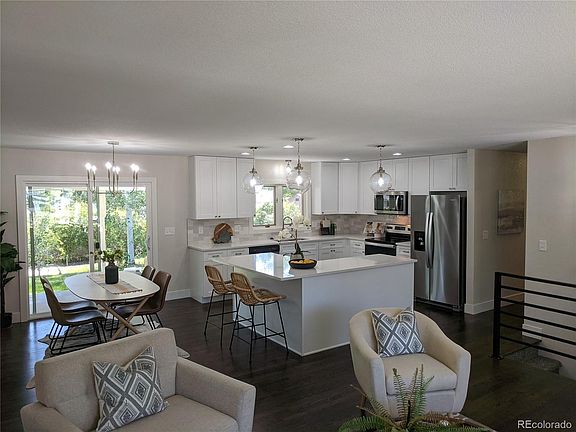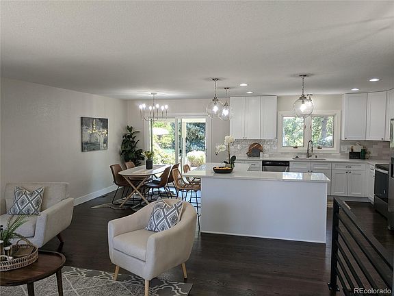 Amazing designer style remodel! You will fall in love with this four-bed, three-bath, Ranch style home in Littleton. This home has been tastefully remodeled from top to bottom. As you walk inside the front door, the open floor plan just draws you right in. The remodeled kitchen is large and features a huge island. This kitchen was built to entertain. The refinished hardwood floors flow throughout the main level into each bedroom. The master bedroom features a remodeled 3/4 bathroom. The basement is fully finished with a fourth conforming bedroom and a 3/4 bathroom. With a sizeable corner lot at 12,850, there is parking for a recreational vehicle. However, this home is just waiting for you to build your dream garage. Other great features of this home include new roof, new electrical panel, new garage door, new AC unit, new high-efficiency furnace, new high-efficiency water heater, 29*12 covered patio, remodeled bathrooms, custom handrails, new interior paint, new exterior paint, new carpet, new doors, new light fixtures, and door hardware. Don't wait to show this home. It is rare to find a designer remodel of this nature.