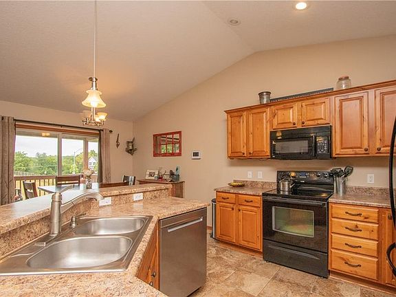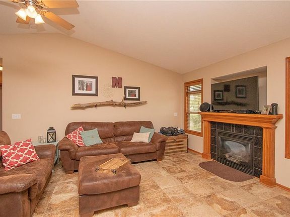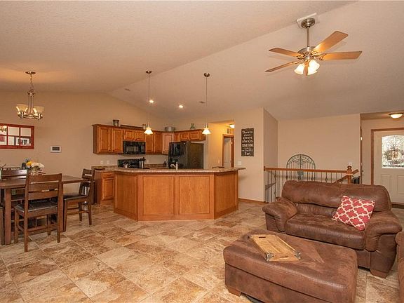 Ranch home on corner lot near Easter Lake. Open concept great room features vaulted ceiling and 18" ceramic tiled floors and fireplace. Corner kitchen with bartop seating and dining area with slider to the covered deck. Dedicated laundry room off the kitchen. Master suite has vaulted ceilings and 2 additional bedrooms with full bath complete this level. Lower level is newly finished with high ceilings and LVP flooring. Wiring and plumbing is complete and ready for a custom bar. Bedroom, full bath and ample storage space. Slider to fully fenced back yard with brick grill surround. 2 car attached garage has built in shelving and alcove for deepfreeze. Security system stays. Professionally landscaped. Enjoy the quite country feel from the covered back deck overlooking a pond. Quick access to hike/bike trails at McKinley Park.