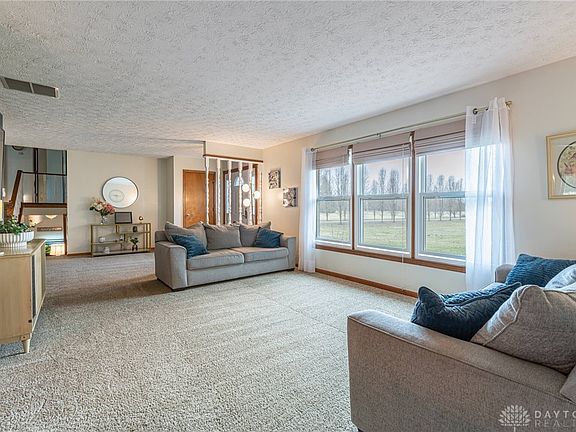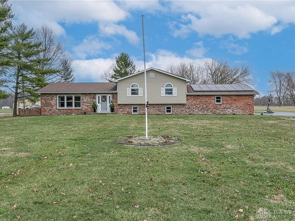 Nestled on 5+ acres, this charming 4-bedroom home with all its updates and additions will move you to immediately feel the balance of country living with proximity to the city. The tree-lined drive invites you into this Oasis situated in Clearcreek Twp. and Springboro Schools. As you step inside, a welcoming tile entry guides you into the spacious living room, setting the stage for delightful entertaining. The kitchen adorned in ceramic tile, and oak cabinets, is adjacent to the dining room which flows into the expansive open-windowed sunroom. The journey continues inside the 2,800+ sq. ft. layout with the second floor design featuring 3 bedrooms including the Owner’s suite. A Luxurious retreat, featuring a double vanity, whirlpool tub, skylights, and custom tilework. The lower-level family room boasts a charming brick fireplace and offers an extra bedroom ideal for family or guests. A generous utility area, and ample storage area are part of the unique and eco-friendly utility systems. Convenience meets modern living with a whole house hot water on demand and a water filter system. Additionally, this home is thoughtfully equipped with a geothermal 3-zone heating system. Recent upgrades include double-hung vinyl windows, newer roof and solar electric panes. It's all about Efficiency, for your Benefit and Enjoyment. Transitioning outdoors reveals your own Wonderland. Highlighted by the stunning ~40x20 (30,000-gallon - heated) inground pool, installed in 2007 with an auto safety cover. The covered patio and pool deck showcase the picturesque surroundings. A versatile 24x40 barn with 220 amp service, concrete floor and heat, opens up your possibilities. The acreage is well-suited for animals or pets and lots of outdoor activity and entertainment. A private pond in the way back enhances the park-like setting of this incredible property. Stop by today to experience it in person before this one is gone too.