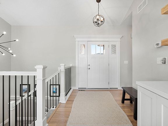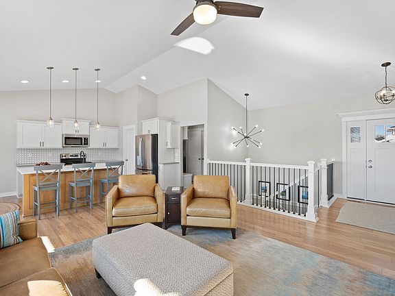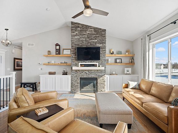 Welcome home to this meticulously maintained 5-bedroom ranch in the Sunset Ridge subdivision! Built in 2019, this home offers an open-concept design with a spacious great room, a cozy gas fireplace, and a kitchen featuring a large island and walk-in pantry. Just off the dining area, a wood deck overlooks the natural grassy area maintained by the HOA - perfect for birdwatching. The main level boasts three bedrooms, including a primary suite, while a mudroom and laundry room off the 3-car garage provide a functional drop zone. The basement expands the living space with a huge rec room, a wet bar, and two additional bedrooms-- each with large walk-in closets. Step outside and extend your living space into the beautifully designed brick-paved patio, accessible from the deck stairs. This thoughtfully crafted outdoor retreat features a gas fire pit and designated dining area, making it the perfect spot for gatherings. A playscape with rubber mulch adds extra outdoor fun.