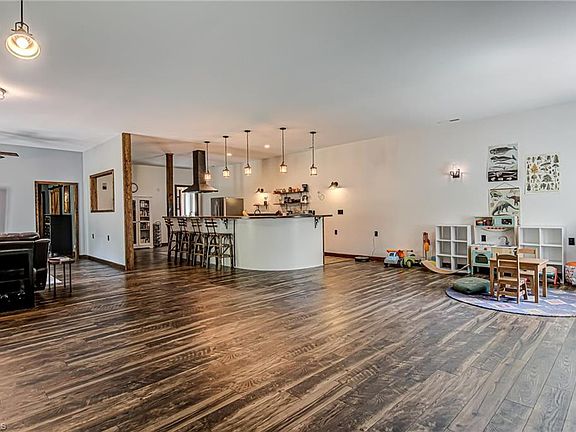 Looking for that one-of-a-kind place to call home? Look no further-a true Barndominium!! This unique property has been fully renovated into a custom home! The owners have shown great attention to detail in the renovations, from the front doors that were made from custom cut, locally sourced Oak, to the rafters, made of custom-milled Poplar. The kitchen features rough cut, live edge counter tops, and a wrap-around bar. Owner’s suite is located on main level, with two additional bedrooms, bathroom, loft, and finished storage room upstairs. Situated on over an acre with two separate decks, this home is truly spectacular. Property includes 3 car detached garage at front of the property. *Note: Second bedroom has no window.* *Showings begin May 5th.*