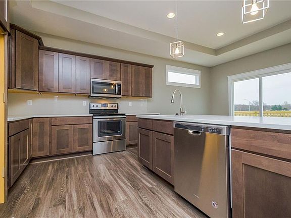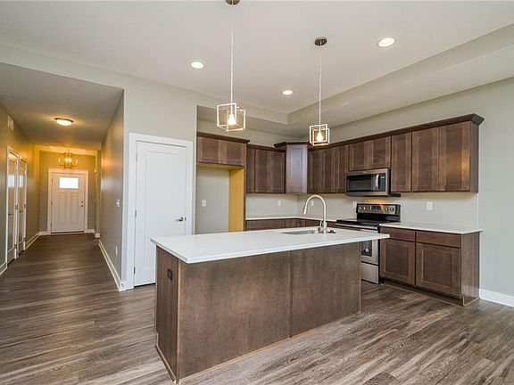 Brand new Brook Landing Development w/SE Polk Schools and DSM 6 year tax abatement! Conveniently located minutes away from Pleasant Hill and Altoona restaurants/shops and the new Mall! 4 bedroom ranch with almost 2700 sq.ft. finished. 9' ceilings on main level, 12 ' impressive entry way! Large mudroom with lockers w/ passage way into Beautiful master suite. Quartz counters and maple cabinets, center island and pantry in the kitchen. Popular LVP flooring throughout main level. Huge lower level family room with second fireplace w/ stone surround, wet bar, 4th bedroom and full bath. Covered Deck w/ fan. Lots of daylight windows in the basement with tons of natural light. Our standards are their upgrades! Great location!