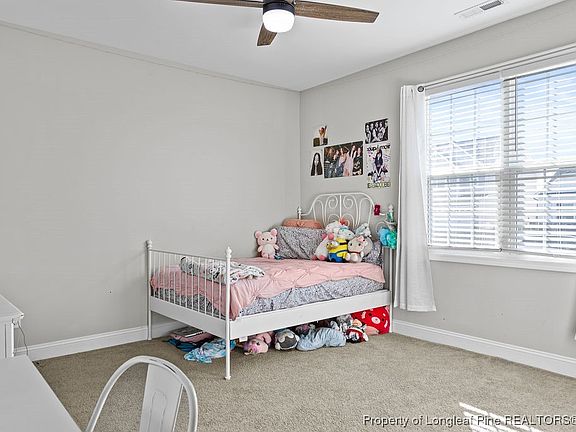 This stunning home offers over 2,400 sq. ft. of thoughtfully designed living space, featuring 4 bedrooms, 3 full baths, and a spacious bonus room. Located in a desirable neighborhood with a community pool and playground, this home boasts an open floor plan with a large great room, a gas log fireplace, and an eat-in kitchen with an island, granite countertops, stainless steel appliances—including a gas range—and a pantry. The first-floor master suite impresses with a tray ceiling, a huge walk-in closet, a dual vanity, a soaking tub, and a separate shower. Two guest bedrooms, a full bath, and a laundry room complete the first floor. Upstairs, you'll find an additional bedroom, a full bath, and a generous bonus room—perfect for a private in-law suite. Enjoy outdoor living on the covered back patio overlooking the backyard. Zoned for highly sought-after Gray’s Creek schools, this home is a must-see!