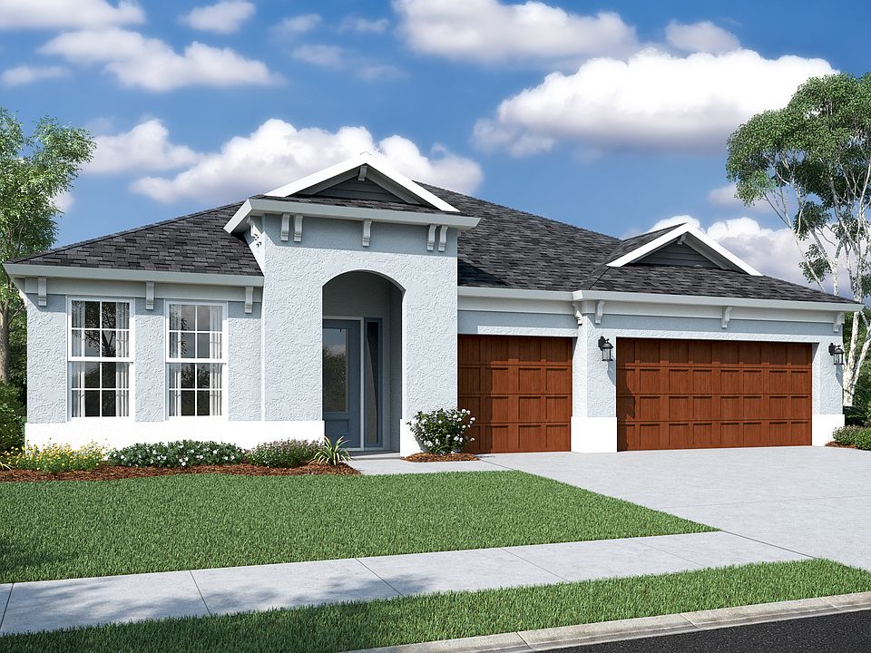 Pre-Construction. To be built. The Devonshire II is a single story, 3-car garage home, featuring an open floor plan, with 12' ceilings in the entry and main living areas, large kitchen with 42" wood cabinets an over sized quartz island, overlooking the family room with immediate access to a private covered lanai for wonderful yearlong enjoyment. A 8' triple sliding door off the family room area provides great natural light into the living space. This executive style home is nicely appointed with 4 bedrooms, 3 baths, an additional living and formal dinning space. The large master suite features an over sized walk in shower with quartz counter tops, double sinks, and a very large walk-in closet. The Devonshire II offers a perfect balance of open living space and privacy, with Award Winning Construction and Energy Saving Features such as 30 Year Dimensional Roof with Transferable Warranty, Radiant Barrier OSB Roof Sheathing, Energy Star rated Double Pane, Low -E Vinyl Frame Windows, Trane 16-SEER Variable Speed Air Conditioning and Heating System. This home includes many upgrades such as built-in Smart Home Technology Features and Amazon Alexa (given to buyer at closing). Photos are of previously built model home or renderings and do not represent upgrades that are added in this home.
