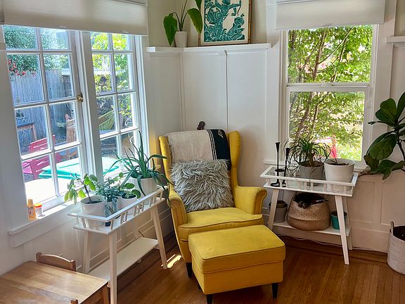 Charming fully furnished 2 bed 1.5 bath house all utilities included. Easily found street parking leads to the front of the house with a small healthy succulent garden. Roses and rose geraniums line the side yard path leading to the compact, but lush back patio with table and gas barbecue. Inside, is a cozy living space with great natural lighting and double paned windows throughout. The front room has a couch, coffee table , and large 55" smart TV with a fireplace. Adjoining the front room is a formal dining room and small room that can be used as an office or a workout room. A half bathroom with storage closet is attached to the galley kitchen. There is a gas range for cooking and gas furnace heater for the winter controlled by nest. Upstairs is the master bedroom with office space, couch, and closet. Also upstairs is the second large bedroom (it is a kids bedroom currently but we can remove child furniture upon request). In between the 2 bedrooms is the main bathroom with a clawfoot bathtub and shower. The house has a ring doorbell with camera, backyard motion detection lights, and an additional camera Also the system has door chimes for front and back doors that provide additional security. Ideally located in the vibrant Temescal neighborhood, you're within walking distance of Whole Foods and a selection of highly-rated restaurants and bars. Conveniently close to UCSF Benioff Children's Hospital and Kaiser Oakland, with a 12-minute drive to UC Berkeley and a 20-minute drive or quick bike ride to San Francisco. This delightful home combines comfort, character, and an unbeatable location. 1 mile to either Ashby or MacArthur Bart Stations. Bike share across the street and several bus stops in close proximity. Fully furnished house available for mid-term rentals (3-12 month lease then month to month). Owner pays all utilities including gas, water, electricity, internet and garbage. Small dogs are ok with an extra $500 refundable deposit. $175 non-refundable cleaning fee. No smoking.