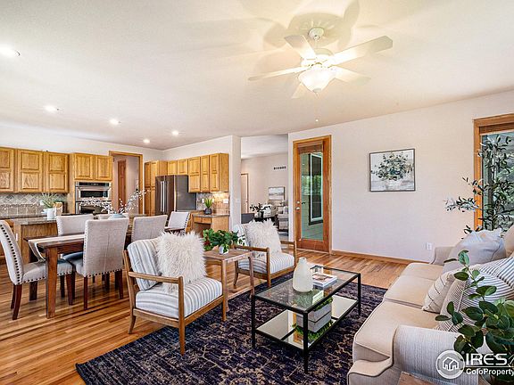 NO METRO DISTRICT. Spacious ranch style home in Highland Meadows with two separate attached two car garages! Quality construction is highlighted throughout this well kept home including 8' solid core oak doors, and wood casement windows. The living room features soaring 11 foot ceilings with light & bright high windows. The open kitchen, dining, family room area features 9 foot ceilings, solid oak floors, cozy fireplace and lots of windows! The kitchen is well appointed with quartz countertops, high quality stainless steel appliances, gas cooktop and in wall oven & convection microwave. The primary suite is separate from the guest bedrooms with a 5 piece bath & huge walk-in closet and walks out to covered patio. Fully finished partial basement with huge rec room, 4th bedroom & bath, office & lots of storage. Lovely front patio & back covered patio overlooking well kept landscaping & fenced back yard. Backs to small greenbelt for added privacy.