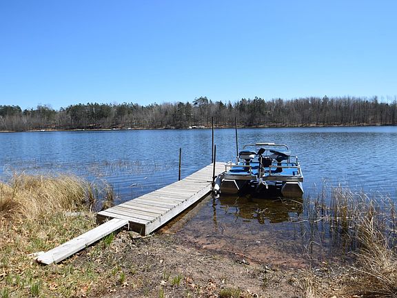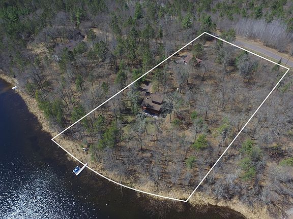 Charming newer hand-hewn log-sided chalet cabin sits nestled in the pines on the shores of private Stone Lake just outside of Danbury, central to all things lake living! Gorgeous pine interior, spacious greatroom with soaring vaulted ceilings, trapezoid windows, wood burning stove, unique wood floors throughout, lofted master BR. Partially finished w/o bsmt offers 3rd BR/rec space & roughed in for 2nd bath and laundry hook-ups. Bring the outdoors in while you relax in in the lakeside screen porch, or on the covered deck and patio. Stunning privacy w/1.75 acres, gradual slope to firepit at the water's edge, 194' of sand shoreline. Enjoy serenity on this quaint clear no-wake lake peppered with just a few properties. Newer 2 car det. gar. and top-notch mechanicals. Hundreds of acres of county land nearby, wildlife galore, miles of for UTV/snowmobiles, close to the Minerva Chain of Lakes, Danbury, casino & all things fun! You'll love the simplicity and ease with this year around cabin!