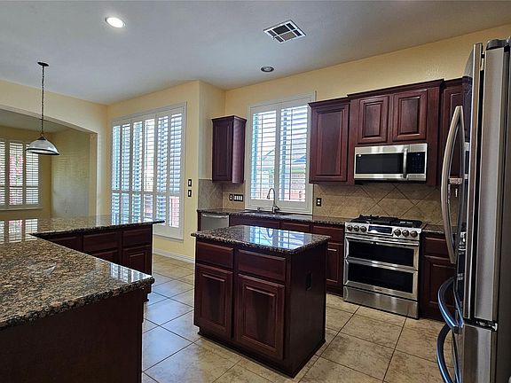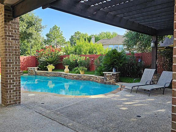 Gorgeous 4/3/2 w/POOL, study and game room on a quiet cul-de-sac, near schools and walking trails. Plank vinyl floors and tile throughout. No carpet. The home has an awesome, backyard, perfect for entertainment. Great size covered deck overlooking gorgeous pool. Unique floor plan with three downstairs bedrooms, and one upstairs with a full-size bath, and a big game room! Seven Meadows is a fantastic master plan community near La Centerra, restaurants and grocery stories Very accessible to Grand Parkway and Westpark Toll. The home is zoned to awesome KISD schools! You will love the huge and bright island kitchen opened to the big family room with gas log fireplace, study, formal dining room and the open floor plan w/ lot's of windows and plantation shutters. The spacious primary suite has a great view of the pool, master suit bath w/ large walk-in shower, big soaking and big walk-in closet. Oversize garage. Home is very close to neighborhood pool. Location is awesome!