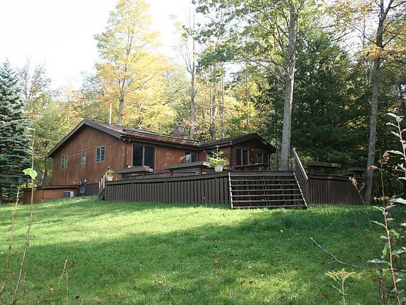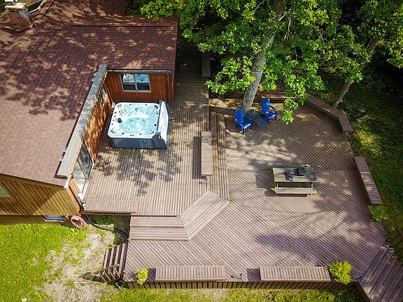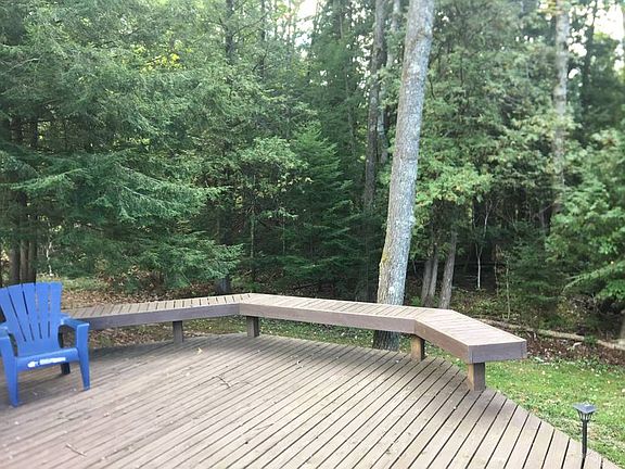Absolutely Gorgeous home AND property; family year round home or cottage. Located on the East side of Hubbard Lake; deeded lake access, just a short walk away. Nestled on 2 nicely wooded lots; this home offers 1,252 Square feet of open living space, Newly renovated kitchen with stainless steel appliances and Corian countertops; Knotty Pine Walls in Kitchen & Living area with Vaulted Ceilings, 2 Bedrooms, 1 3/4 Bath, Free Standing Wood stove fireplace, Central Air and 14 by 34 walk out basement. Master Bedroom and Living room have Anderson Door Walls that enters to the 1,750 Square foot wrap around deck, for amazing outdoor living space and the perfect spot to watch the sunsets. Anderson windows throughout. Tile Kitchen and bathroom flooring. Main Floor laundry. Lots of Closet space. Detached garage has 476 square feet. All appliances included and also the hoist will stay. This home is completely updated and move in ready. White Pine National Golf Course just a few miles to the South and is close to several restaurants.