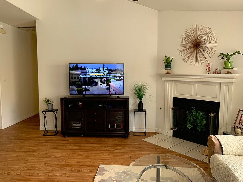 The home is located in a quiet gated community on the east side of Bakersfield in a master-planned community with a neighborhood park. It sits on a premium large corner lot (approximately 6800 sq. ft.). The house has 3 bedrooms/ 2 full baths with 1608 sq. ft. with vaulted (open) ceiling that gives the house a larger feel because of the voluminous openness and many other amenities including newly installed wood laminate flooring. There are brand new lighting fixtures and upgrades to the kitchen. It has fresh paint and comes with lots of extras like a wood-burning fireplace in the living room, built-in bookcases and cabinets, extra large master bedroom with walk-in closet and large master bathroom with dual sinks, oval sunken bath tub/shower, ample closet space in bedrooms all rooms have custom wood blinds. Kitchen has built in a gas oven/ range cooktop, dishwasher, disposal unit, pantry closet, indoor utility room (with washer/dryer hook-up) next to the kitchen. The home has beautifully landscaped front and large back yard with fully automated sprinkler system, and a large patio in the rear. Unit has cable ready/wired rooms, an efficient dual air conditioning /heat central system, large 50+ gallon efficient gas water heater in large garage with plenty room for 2 cars or big SUV/ truck. Come and see this beauty, it won't last long!!!