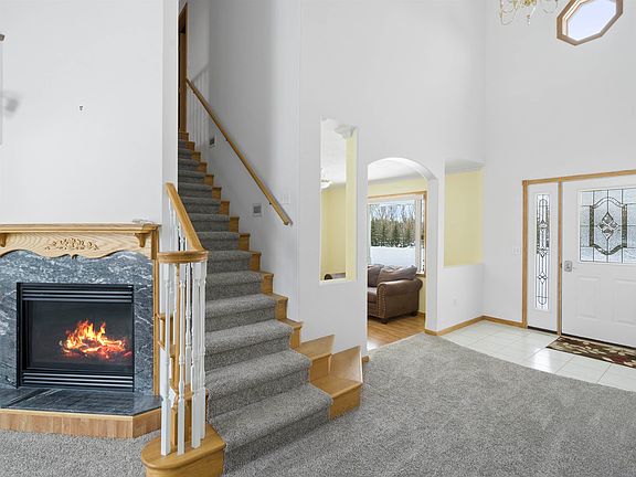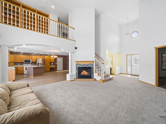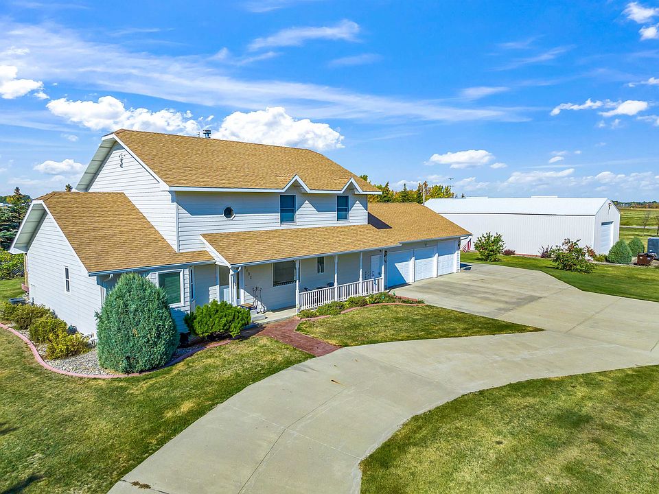 Located on the outer edge of Minot, this home is nestled on approximately 2 acres! With all the mature trees including evergreens surrounding this home it gives the backyard a park-like setting and is very secluded. This home consists of 5 bedrooms of which 3 of these bedrooms are located on the upper level along with a full bathroom and an open loft/sitting area overlooking the great room! The main level great/living room has approximately 20' ceilings, a fireplace and a door that enters into the hot tub room. The master bedroom/suite, sunken den/study, kitchen, dining area, bathroom and laundry room are all located on the main level. The basement consists of a 5th bedroom, large game room/area, additional living room, a full bathroom and a large wet bar area for entertaining. The grounds outside you will find a large 36'x72' shop with 14' side walls and a 12' high door, with concrete floors, a large loft area along with a new overhead door and opener, and an attached dog kennel area on the exterior. An approximate cost to construct a shop/building of this size would be $230,000 to $250,000. The backyard also has a large deck, fire pit area, fenced area for pets, garden area and fruit trees and also underground sprinklers. Sellers are not sure if the underground sprinklers work as they have not used them. Seller mentioned that the average utilities for water and electric were about $230 per month which of the $230 the water was about $90. Seller stated that if you fill the propane tanks before winter, the propane will last you all winter. Owners installed all new toilets throughout the home, the New Central Air outside unit, all new door locks and new carpet in living room and outdoor fence, along with a new shop overhead door was new last year.