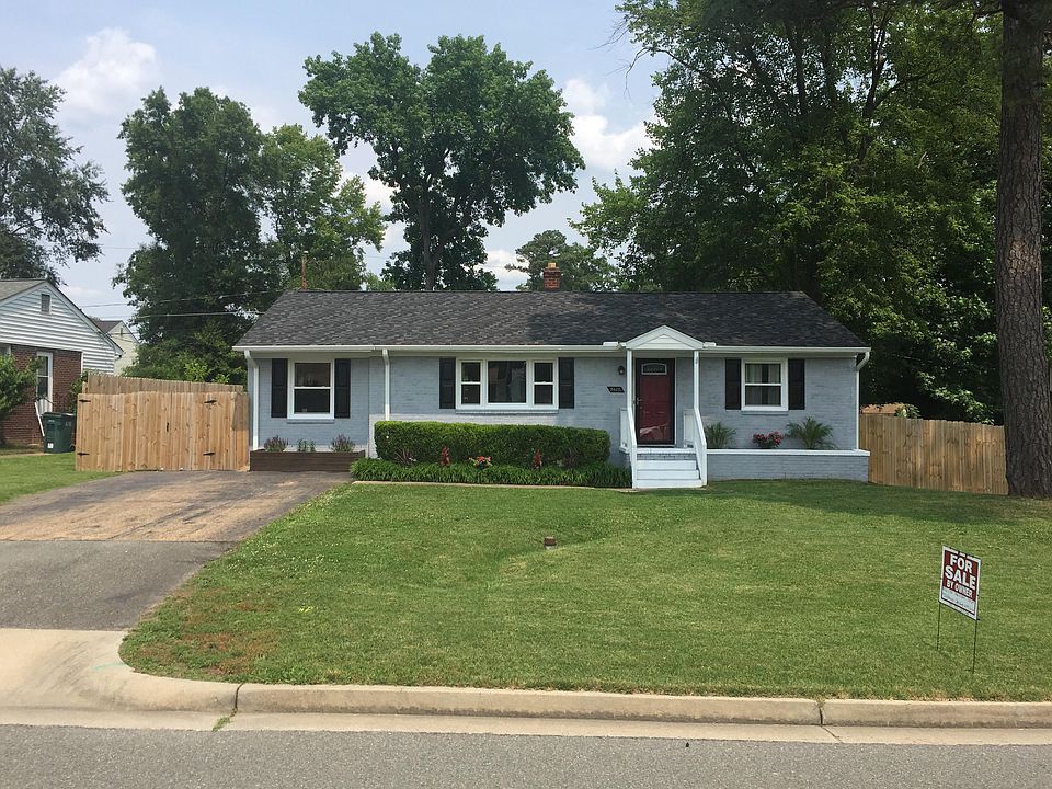 Welcome to this spacious 3 bedroom 2 full bath rancher conveniently located in Bethlehem Place.You can be just minutes away from Willow Lawn shopping center, Libbie Mill, and Scott's Addition, all with tons of restaurants and amenities! The large living room has tons of natural light and beautiful crown molding. The renovated kitchen is equipped with STAINLESS STEEL appliances, white shaker cabinets, GRANITE countertops, tile backsplash and opens to the dining room. Enjoy plenty of privacy in the Primary Bedroom with your very own private entrance, walk-in closet, and a connected en suite bathroom featuring tiled shower and updated vanity. The Primary Bedroom also has a unique sliding barn door and accent brick wall! All three bedrooms feature custom closets and stainless steel ceiling fans! The updated hall bathroom offers a newer vanity, tiled tub surround and newer fixtures. The private backyard showcases a beautifully designed paver patio with pergola, fully fenced in and also has a discrete shed for storage. Other updates include newer 2018 roof, windows, scratch proof laminate flooring, HVAC and water heater. Don't miss out on this beautiful and unique home!!