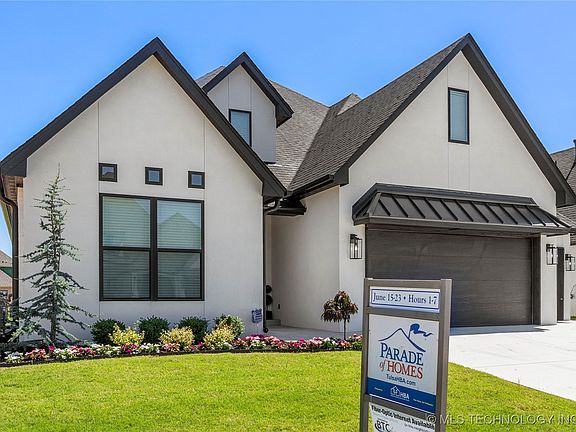 Enter your dream home through this raised entry with a private bedroom and bath suite plus a guest bath adjacent to it. Lower level also includes a vaulted living with fireplace. Study near living. Gourmet kitchen with large dining room. Main bedroom suite with large closet and glamorous bath. Upstairs includes two additional bedrooms with Jack and Jill bath. Large game room with wet bar. Huge walk out attic storage. Other features include a vaulted patio and oversized three-car garage with storage. A must-see home for any family. Award-winning Bixby North schools.