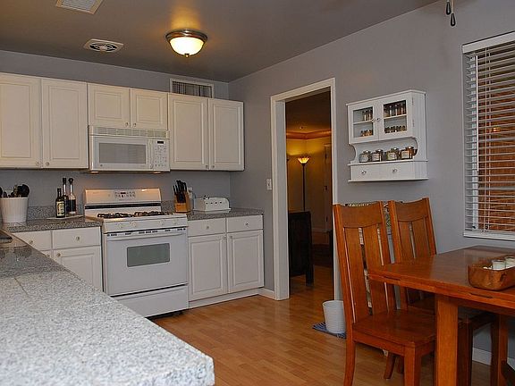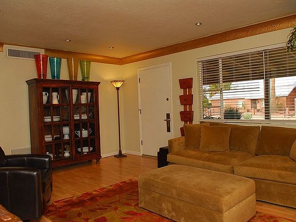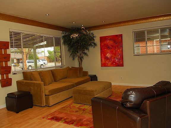 Lovely midtown home in convenient location. Main house is approximately 1120 sq. Granite tile counters, wood laminate floors. Security screens on doors. 3kWh grid-tied solar system and dual cooling for low low electric bills! All windows and front door replaced 2019. Yard is fully fenced and private. Space for smaller RV to park, large rolling gate leads to back alley for easy access. 8 semi-dwarf citrus trees shade the back porch and provide nearly year-round lemons, limes and oranges. There is a detached (electrified but not plumbed) building of approximately 500 sq., used as workshop but could also be comfortable den space, with attached 8*8 storage shed. Unique pergola structure - we made a chicken mansion out of it!