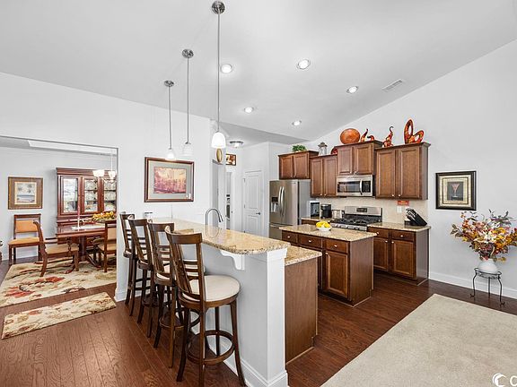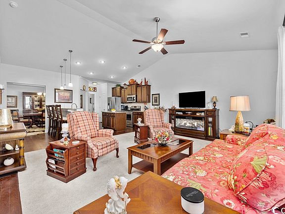Welcome to Tuscany Resort Style Community. You must see this immaculate 3- Bdrm, 3-Bath, Formal Dining Room, 2 Car Garage, All Season Carolina Room along with many upgrades. With approximately 2400 sq/ft under roof, this spacious home has an inviting entry foyer that opens to a welcoming floor plan. The main level features a split bedroom plan that includes the primary suite and a 2nd guest bedroom (0r home office) located next to a full bathroom. The foyer opens to the lovely dining room with crown molding and a tray ceiling. The kitchen has a raised breakfast-lunch bar, pantry, stainless steel appliances, natural gas stove, center work island, and granite counter tops. The familyroom has a vaulted ceiling and large windows that bring in an abundance of natural light. From the family room and owner's suite enjoy relaxing in the newly added All-season Carolina room. Located on the main level is a laundry room which includes upper cabinets for extra storage. The primary suite located on the 1st level just off the family room, has a large walk-in closet, vaulted ceiling, an ensuite bath with double sink vanity, a newly updated step-in shower, and linen closet. The upstairs 3rd loft style bedroom (or games room) includes a full bathroom and access to additional storage. Just off the Carolina room is your outdoor patio with a peaceful view of the pond which is a perfect place to relax, BBQ and entertain. Also off the laundry room is additional storage. The Tuscany Amenity Center and Community is truly one of a-kind. It has year-round amenities which include: 2-story clubhouse, 2 outdoor swimming pools, restrooms, changing area, outside showers, Lazy River, hot tub/spa area, 2000 sq.ft. fitness center, game room, 24 seat movie theater, pickleball & tennis courts, 10 miles of walking trails and 40 acres of lakes. HOA includes maintaining, landscaping & irrigation, Exterior pest control, weekly trash collection. You will love the carefree resort-style community with its vast number of amenities which is also just a short drive to our miles of gorgeous beaches. Very convenient to Myrtle Beach Airport, shopping, Schools, Medical facilities, Golfing and so much more.